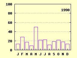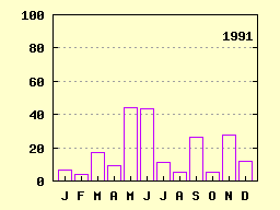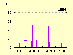 Monatliche Tagesmaxima der Niederschlagshöhe [mm]: Konstanz