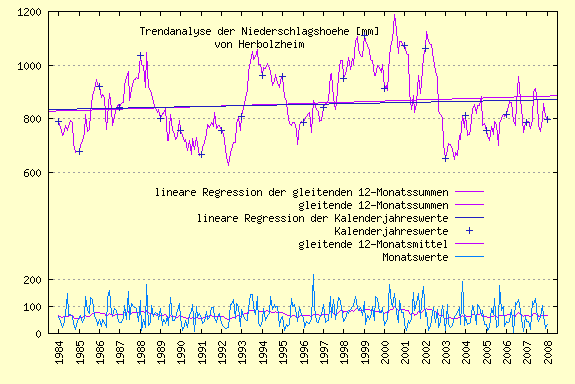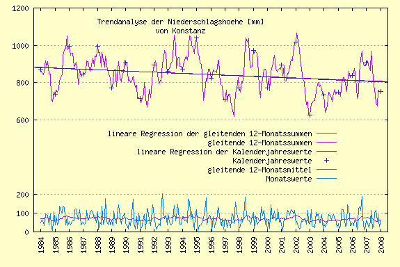 Trend der jährlichen Niederschlagshöhen