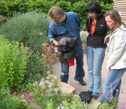 Anschließend fand ein gemeinsames Gruppentreffen der beiden Ortsgruppen der Kreisgruppe Mainz-Bingen (Ortsgruppe Bodenheim und Ortsgruppe Bingen)im Garten statt. Leider mussten einige Mitglieder kurzfristig absagen. Aber für die anwesenden Aktiven hat sich der Besuch gelohnt, denn auch sie wurden von Barbara Winternheimer durch den Garten geführt. ![]() Frieder und Heidrun Stauder von der Ortsgruppe Bodenheim lassen sich die unterschiedlichen Küchenschellenarten (Garten- und Wildform) von Barbara zeigen ![]() Michael Ullrich von der Ortsgruppe Bingen macht sich nützlich und gönnt der Fotografin (Alexandra Stevens) eine kleine Dusche... ![]() ... hier wird allerdings das Sumpfbeet gegossen |