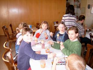 Ortsverband Rockenberg04. April 2004Färben von Ostereiernab 10:00 Uhr im Feuerwehrgerätehaus OppershofenWir werden auf Basis von Naturfarben, Östereier mit unterschiedlichen Techniken Färben und Bemalen. Bringt Eure Kinder mit, denn die haben bestimmt viel Spaß bei der Arbeit mit Eiern und Farben. Gegen Mittag wird es Eier mit Grüner Soß geben. Umkosten entstehen keine, wir freuen uns aber über Spenden. Natürlich bunt. Rückblick: Alle Anwesenden legten sich schwer ins Zeug. Besonders die Kinder hatten Ihren Spaß beim Färben der Eier und zeigten sich äußerst kreativ. Das soll natürlich nicht heißen, dass die Erwachsenen nicht eben so motiviert waren. Seht selbst, die nachstehenden Bilder sprechen für sich ... ![]() Die Kinder waren hoch motiviert ... ![]() ... und dazu noch äußerst kreativ ![]() Aber auch die Erwchsenen ließen sich nicht lumpen ![]() In der Küche wird schon fleißig das Essen vorbereitet |